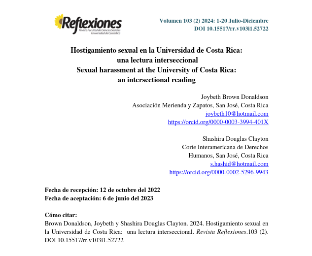 Brown Donaldson, J. F., & Douglas Clayton, S. (2023). Hostigamiento sexual en la Universidad de Costa Rica una lectura interseccional. Revista Reflexiones, 103(2), 1-20. Disponible en:…