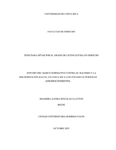 Douglas Clayton, S. Z. (2025). Estudio del marco normativo contra el racismo y la discriminación racial en Costa Rica con énfasis en personas afrodescendientes (Tesis de…
